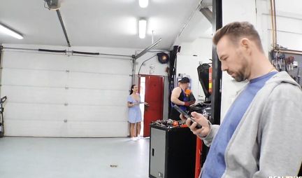 На что только не пойдешь, чтобы ремонт твоей Ауди не встал тебе в неподъёмную сумму. Вот девушка решает подойти к вопросу кардинально и принимает в себе члены механиков и бригадира, которые пахнут мазутом и соляркой, да и анальную смазку неплохо заменяет солидол, только пожалуйста не повторяйте. Мы вот тоже откроем и назовем СТО HDпорно.ru и будем чинить машины, а не то что вы подумали! Замена трамблера, замена лысой резины, а постоянным клиентам еще и аргон в колеса!