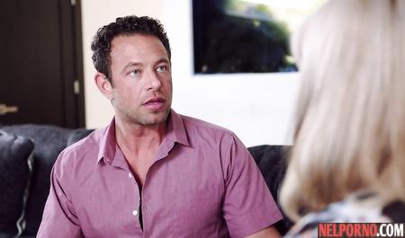 Блондинка мамочка соблазняет соседа минетом и прыгает на его члене киской