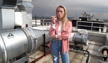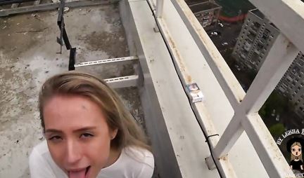 Дабы развлечь свою любимую девушку парень назначает ей романтическое свидание на крыше небоскреба. Там он просит милашку показать сиськи и отсосать на высоте причьего полета. Ну, собственно дело здесь не в высоте совокупления, а в том что девулька глотает вафлю и ей это очень и очень нравится. Интересно, а как любовник будет развлекать подругу - трахнет здесь же в туза?!