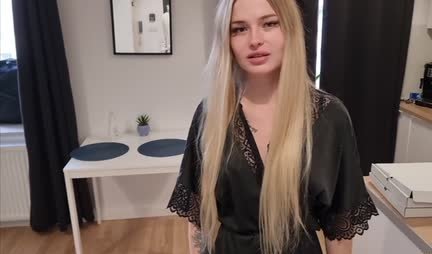 Симпатичная девушка поутру неслабо так проголодалась. Но вот с деньгами после вчерашней попойки выходит полное фиаско, потому что их банально нет. Невзирая на подобных косяк, девица заказывает пиццу с доставкой, а когда мужик требует с девицы деньги, та делает ему минет и позволяет шпехать по полной программе. Так что если у вас нет ни денег, ни еды - берите на заметку и будет вам счастье, полный желудок и полные дырки свежей спермы.