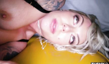 Блондинка с татуировками подставляет сочную попку для глубокого анала