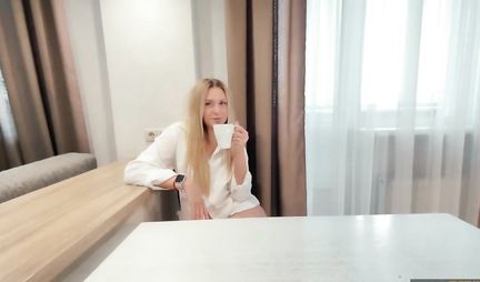 Блондинка сосет крепкий член жениха сестры под столом с утра