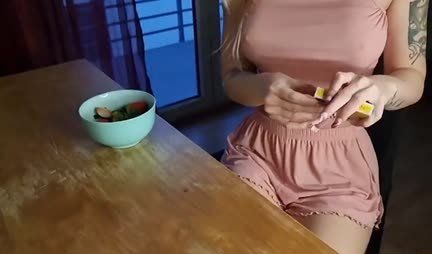 Парень на съемной хате живет давно и его соседка в лице подруги товарища предлагает тому разыграть кому улыбнется удача... Ну и получается так, что блондинка соседка проигрывает, а значит ее будут трахать... Ну и по факту приходится милашке исполнять, впрочем никто и не узнает, если никто трепаться не будет!