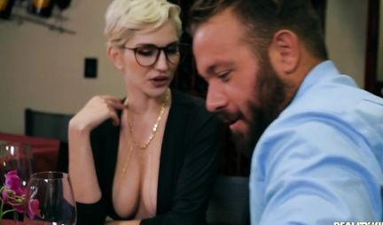 Блондинка в очках после отсоса скачет на члене бородатого развратника