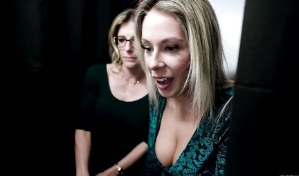 Сегодня у мачехи Кори Чейз хорошее настроение и она хочет поднять его также своему пасынку, который давно мучается без девушки, которая его бросила через хер. Ну в итоге симпатичная мамашка приводит чувака в какой-то мотель и раздевается догола. Все знают что зрелые женщины в постели богини. Но вот насколько в постели богиня Кори Чейз может сказать только Никки Брукс, которые ее там и трахает. Ну а после секса с парнем, милфа зовет в постель свою любовницу, которую тоже приобщает к групповухе.