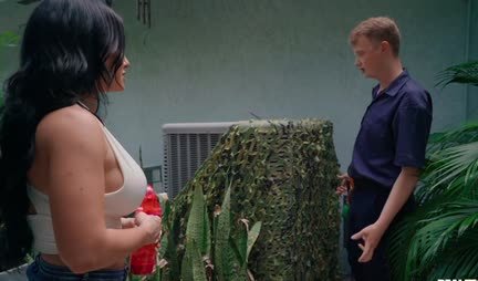 Большими дойками милфа привлекла внимание молодого соседа