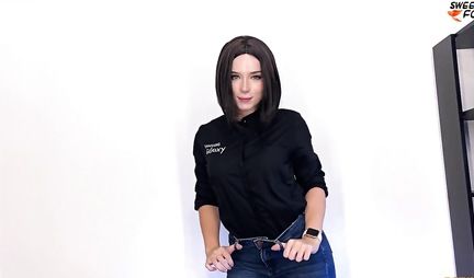 Брюнетка порвала джинсы, чтобы принять крепкий член в киску