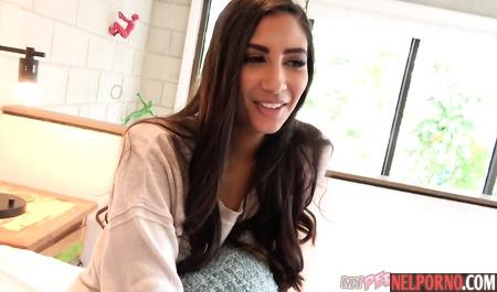 Брюнетка после глубокого минета подставляет промежность для домашней порки