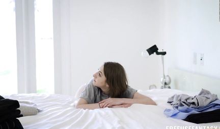 Брюнетка после минета подставляет сочную пилотку для вагинала с мужем матери