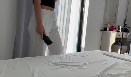 Конечно, проснуться, пока супруга принимает душ, подсмотреть за ней голышом, а после весь день любоваться на ее красивую задницу и совмещать приятное с полезным, передергивая уже прилично возбудившийся пенис - это так романтично и по джентльменски. Ну а в заключение отодрать любимую прямо перед работой - вот именно этим и занят супруг-романтик красивой милфы...