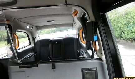 Брюнетка спустила маску и трусики в машине такси и дала себя отыметь незнакомцу