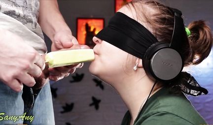 Веселый мужичок под вечер предлагает своей симпатичной женушке сыграть в интересную игру. Он завяжет ей глаза, а та будет по вкусу угадывать какое морожено он будет давать ей пробовать. Для начала супруг чередовал деликатес со своим членом, но после тупо заставил супругу делать минет и даже кончил в рот. И пусть не сразу, но все равно она узнала сперму. Так что надо чаще заниматься оральным сексом как ни крути!