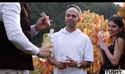 Дружок красивой брюнетки любит таскать девушку с собой по виноградникам и поить свежим вином. Ну как там она и встречается с лысым чуваком, а после того как друг спит без задних ног после усиленной дегустации, молодуха ищет на свою жопу приключений и таки находит их через члены хозяина плантации и лысого гостя. Одного конца столь горячей крошке маловато и она шпилится сразу с двумя в групповом порно с двойным проникновением.