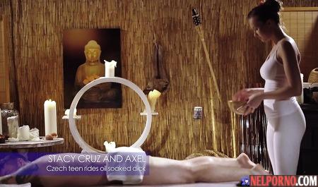 Вот уже совсем скоро заканчиваются весенние майские праздники, а весёлая грудастая массажистка Стейси Круз так и не пошарахалась с мужиком в честь самого любимого праздника. К слову сказать сделать это никогда не поздно, потому что очередной клиент на порцию неистовой любви лежит прямо под рукой на массажной кушетке и именно он становится на сегодня хахалем очаровала.
