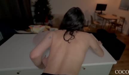 Худая брюнетка любит трахаться со своим бойфрендом на столе