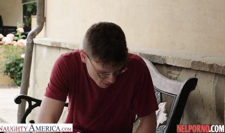 Красавица училка с большими дойками соблазнила молодого студента на секс