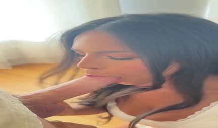 Красивая брюнетка сочным минетом порадовала бойфренда