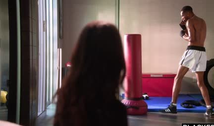 И пусть фитнес-салон у симпатичной брюнетки-администраторши совсем небольшой, но его вполне хватает для интимных целей ненасытной красавицы. Так сегодня в спортзал приходит стройный негр, чтобы побить грушу. Ну а когда он устает, услужливая Лизочка делает ему минет и от души порется с обладателем шикарной черной елды.