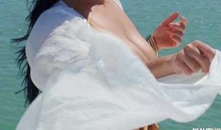 Если температура воздуха довольно таки сильно зашкаливает, то наверное единственное место где можно спастись от нестерпимого зноя - палуба корабля на одной тамошней реке. Благо молодой капитан посудины старый знакомый трех очаровательных подружек. Две из них предпочитают заниматься лесбийским сексом, а грудастой брюнетке достается ублажать молодой член всеми дырками.