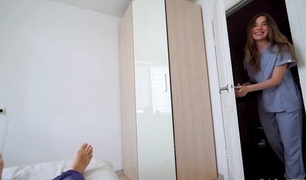 Симпатичная медсестра приходит к больному для заключительной процедурой перед выпиской. Но тот полон сил и желания перепихнуться. Уговорив девушку побаловать его конец мастурбацией, чувак разводит телку на минет и последующий секс. Ну если медсестры нужны чтобы помогать людям, то с этим в данном случае все нормально!