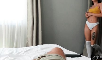 Милашка в очках хочет насладиться анальным сексом с утра
