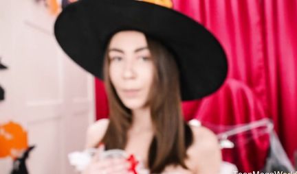 Молодая русская красотка пришла к парню и во время Хэллоуина они занялись сексом