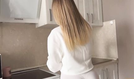 Молодую подругу парень наказал жестким сексом на кухне