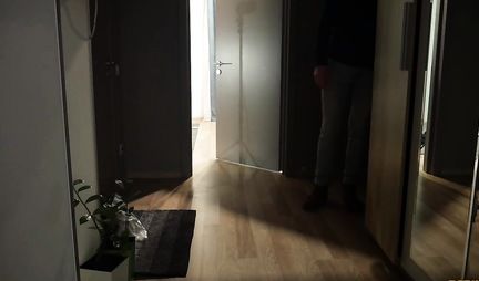 Муж смотрит на домашнюю измену своей жены и ему это явно очень нравится