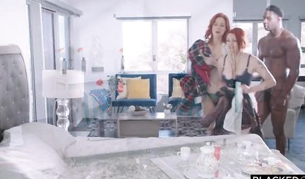 Негр выдает двум рыжим партнершам гигантский член и кормит их теплой липкой кончой