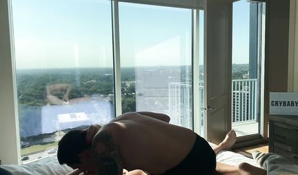 Парень оттрахал молоденькую подругу возле панорамных окон
