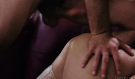 Парни на диване устроили шикарной брюнетке глубокое двойное проникновение