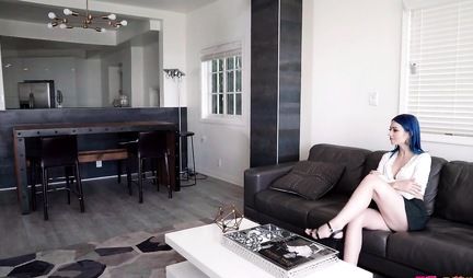 Даже последняя собака на районе просто таки отлично знает что у Длинного Логана габаритный половой прибор. Что же тут тогда говорить о синеволосой Джевелс Блю, которая давно мечтает переспать с этим товарищем и потому приглашает его вечером к себе в гости. Вот только романтические отношения ни разу не вставляют гостя и вместо них он отлизал сладкую вагинальную дырочку жаждущей жаркого траха девушки и вогнал немалую елду между стройных женских ног.