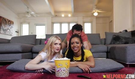 Ревность это как говорится удел самых обычных неуверенных в себе людей, а эта симпатичная светловолосая девушка вообще не такая, поэтому она ничуть не возражает, когда бойфренд лупит сначала ее чернокожую приятельницу, а после и ее саму в межрасовом групповом сексе. Впрочем по ситуации порядок сношения может и меняться, но все равно здорово!