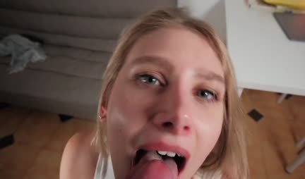 Русская блондинка оральными ласками дарит кайф ухажеру