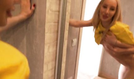 Русская блондинка в позе раком испытывает оргазм во время домашнего порева