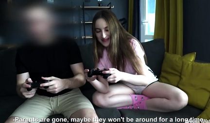 Играть в консоль со сводным братом весьма увлекательное занятие, которым и занимается худышка Энни Уокер. Вот только играть на что-то гораздо интереснее чем просто так. В итоге девушка проигрывает и братан жарит ее своей висячкой, давно превратившейся в стоячку в разных позах и с разной амплитудой и частотой. И все бы ничего, но главное чтобы девушка не залетела. Вот к чему зачастую приводят игры в консоль. Напишите, а у вас было что-то подобное?!...