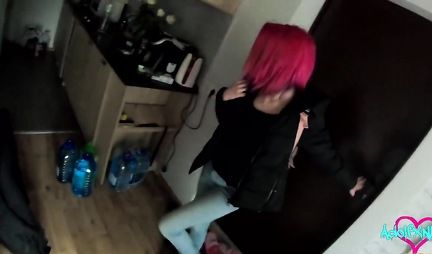 Русская девушка с красными волосами наслаждается домашним порно