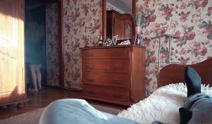 Молодая женушка питерского чувака собралась с подругой в кафе и не знает что одеть. Народная мудрость гласит: если не знает что одеть лучше все снять. Ну так девица так и делает после того как возбуждает молодого человека на секс своей красивой попой и ногами в чулках. Печалит только тот факт, что милашка с подругой собирались именно в кафе найти любовников и тем самым разнообразить сексуальный досуг в ближайшем мотеле! Ну да это еще не поздно сделать.