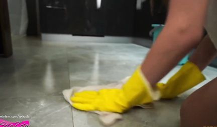 Паренек после праздников прибухнул на недельку и за это время в квартире остро назрела необходимость уборки. Дабы самому не пачкать белые руки, этот чувак приглашает девушку из клинингового агентства. Та приходит полная готовности навести порядок... Но в квартире жарко и девушка раздевается догола. Но в порядок нужно привести и пенис хозяина квартиры, который возбудился до безобразия. Ну так русская девица готова и на такое - правда за отдельную плату.