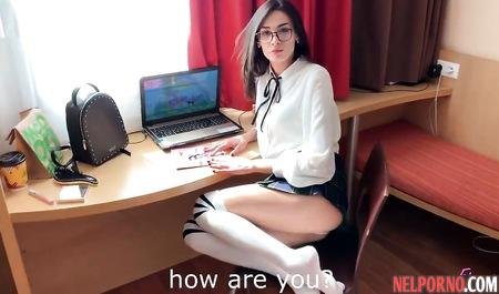 Считается что самый настоящий английский язык один из самых простых для изучения и прочего восприятия. Но вот молоденькой москвичке никак не удается выучить его хотя бы на 8 процентов от общего объема. Приходится родакам нанимать самого настоящего репетитора. Но и его шалунья без каких либо траблов соблазняет на жаркий, домашний секс. Весь нюанс в том, что даже во время траха она кричит по русски, а не по английский как рекомендовано Министерством образования.