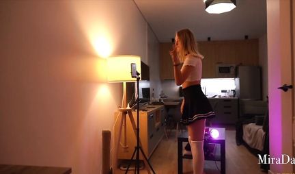 Сивая москвичка знает что у нее красивые ноги в все тело тоже. Потому она записывает видео привет своему другу в котором красиво и сексуально танцует. Как раз за этим ее и застает сводный брат, который тоже не прочь получить от сеструхи утренний привет - посредством минета и уже почти привычного домашнего секса. Ну вот так у девушек: одному шлем видео, а у другого сосем член и даже трахаемся...