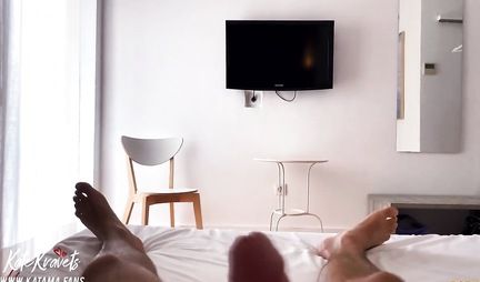 Администратор отеля Катерина зашла в номер парня по поводу сломанного телевизора как раз в тот момент, когда тот занимался мастурбацией. Ну а поскольку с ремонтом у гостиницы проблемы, то девушка предлагает посмотреть на нее голую... Поначалу мужик ломается как целка, но когда со стройной девушки спадают одежды, то и его мнение меняется на прямо противоположное, а член встает почти вертикально. В качестве компенсации за моральный ущерб она еще и сосет член и даже порется в позиции догги-стайл. Жаль что не пришла жена хлопца, иначе мы посмотрели бы на групповуху или бои без правил!