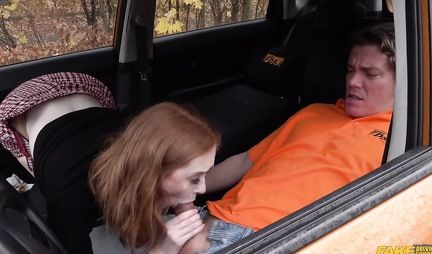 Рыжая развратница прямо в машине соблазнила инструктора и дала себя отыметь
