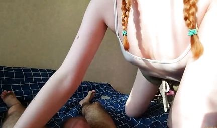 Рыженькая телочка с косичками классно умеет сосать