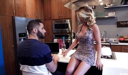 Моя мачеха не знает слова нет и если раньше мой добрый папашка еще как-то справлялся с любвеобильной женушкой, то в последнее время он предпочитает находить разные причины, чтобы увильнуть от полового сношения. Вот потому вся страсть бабенки направляется прямиком на мой пенис. И даже тот факт что у меня есть подружка и обязанность учиться в колледже не играют ни малейшей роли в желаниях стройной милфы. В итоге она соблазняет меня на домашний секс и я боюсь как бы это не отразилось на моей успеваемости - ведь придется успевать трахать эту нимфоманку и учить уроки... надеюсь не одновременно.