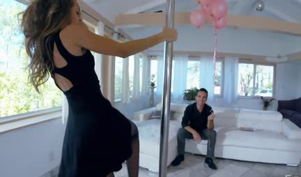 Мало того что Кимми отличнейшая стройняшка, но она еще способна на неожиданные поступки. Так сегодня девушка вспоминает что у ее товарища праздник и потому приходит с воздушными шарами и танцует перед парнем что-то очень похожее на стриптиз. И пусть черные трусики еле прикрывают манду, то трахается девица сначала в рот, а уже потом в другие дырки. Все вместе чуваку очень нравится и именно за это он и любит девицу.