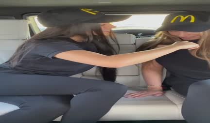 Вот почему-то говорят что мужчины непостоянны, а женщины наоборот. Ну и для примера посмотрите на этих двух девиц, которые после работы в макдаке решили поехать с друзьями на природу, чтобы там пожарили шашлыки, а после и их самих. Но поскольку был вечер пятницы, то парни забыли про девок и пошли пить пиво. А когда милашки поняли что сегодня с сексом им облом, то побаловались друг с другом на заднем сидении геленвагена