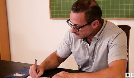 Если молоденькая и весьма привлекательная студентка на продленке в тетрадке рисует мужской половой орган с яйцами и дрочит прямо на рабочем столе у декана то это само собой значит у телки не все в порядке в личном плане и святой долг двух наставников преподавателей сделать все возможное, чтобы молодуха получила пару оргазмов во время группового порно с двойным проникновением. Оказывается учится в колледже не так уж и скучно и здесь есть определенные положительные моменты как для учащихся, так и для преподавательского состава!