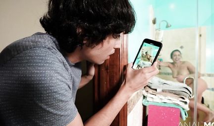 Увидел как мамка мастурбирует и подставил свой большой пенис