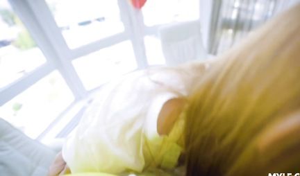 В видео от первого лица рыжая девица с аппетитом сосет член